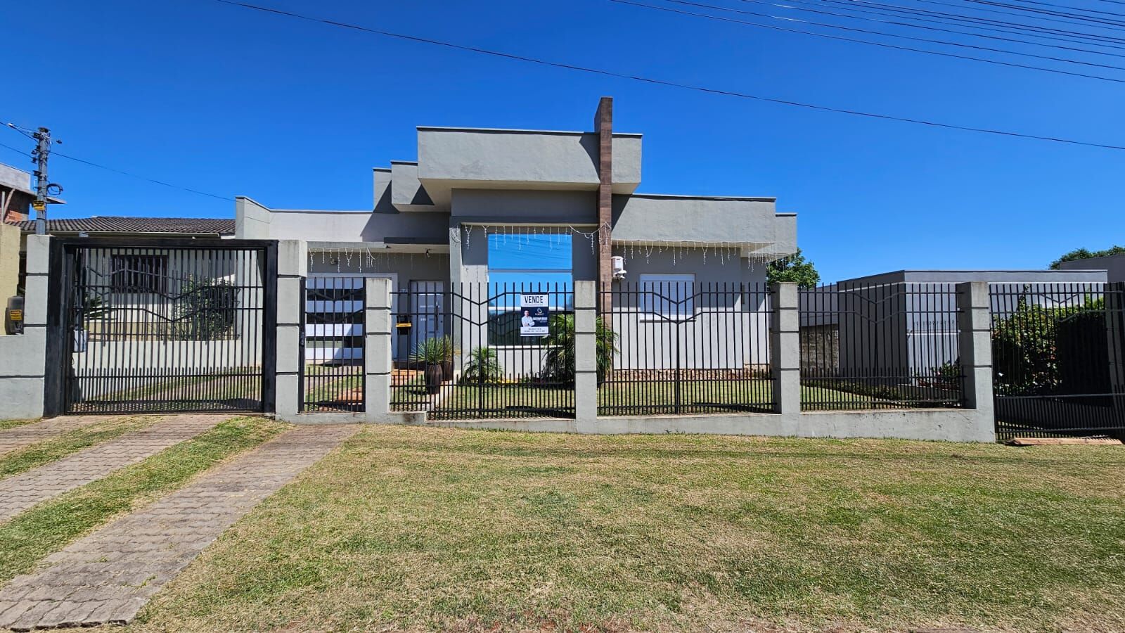Possui laje em toda a casa, pisos em porcelanato, banheiro social, área de serviços e garagem para dois carros, sendo uma vaga coberta. O terreno plano e totalmente fechado, com 766 m², proporciona segurança e amplo espaço externo, além de pátio grande e churrasqueira, ideal para momentos de lazer.